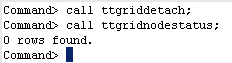 Use the procedure ttGridNodeStatus to verify that cachedb1 is no longer attached to a cache grid. |