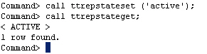 The built-in procedure ttRepStateGet returns the current replication state of the database. |
