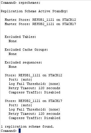 The ttIsql command repschemes can be used to verify the current replication scheme deployed in the database. |